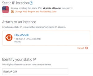Step 2.2.1: Attach Static IP to Lightsail Instance